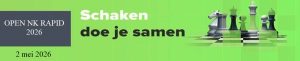 Dit is het schaaktoernooi om het Open Nederlands kampioenschap Rapid. Elke speler krijgt 15 minuten plus 5 seconden per partij. Hoewel het een Nederlands kampioenschap is kan iedereen deelnemen. Je moet wel lid zijn van de KNSB maar bij het inschrijven voor dit toernooi kun je je daarbij aanmelden of dit regelen aan de speelzaal. We spelen 9 ronden en we beginnen om 10 uur ’s ochtends, en de prijsuitreiking is om 20:00. Meer info op de website: https://nkschaken-rapid.nl/open